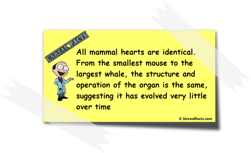 An extensive study that was conducted over 40 years has found that all hearts of mammals are essentially identical. Apart from the obvious size difference, the design and function of hearts, from the smallest mouse to the largest whale are alike.